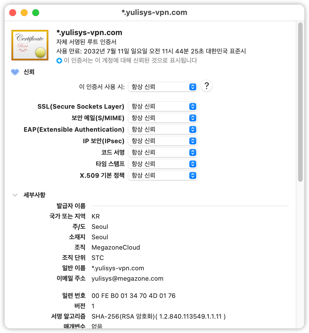 Email Address | 인증서 발급 담당자 메일 주소. |